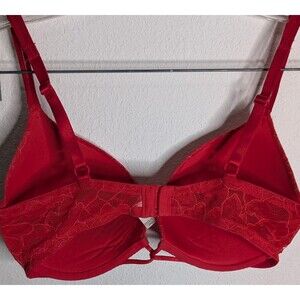 Victorias Secret Bra Womens 34D Red Pink Lace Plunge Underwire Push Up (451)