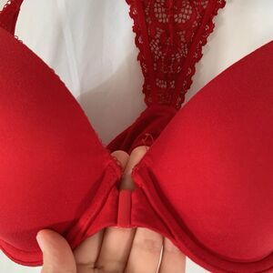 Victoria's Secret Bra Women's 34D Red Underwired Padded Lace