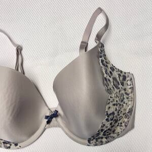 Victoria's Secret Bra Women's 34DD Gray Cheetah Print Demi Underwire Tee Shirt