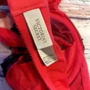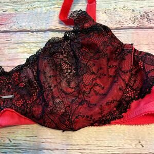 Victoria's Secret Bra Womens 36C Red Black Lace Unlined Demi Bra Valentines