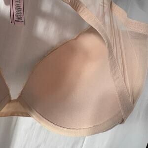 This is a Victoria's Secret bra in size 40DD. It features a beautiful beige lace design with a lightly lined push-up style, perfect for enhancing your natural shape and providing comfortable support.