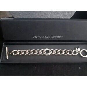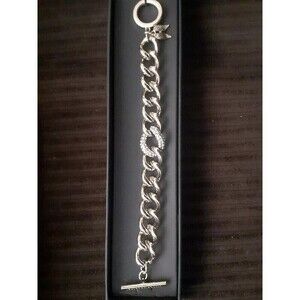Victoria's Secret Rhinestone Chunky Gold Tone Chain Link Toggle Bracelet NEW.