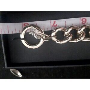 Victorias Secret Bracelet Chunky Gold Tone Cuban Chain Rhinestones Wings 6.75"