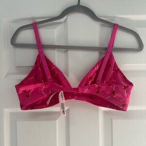 Women’s size large. Satin bralette. Single hook eye closure. From the Valentine’s Day collection. Tease line. Adjustable straps. Comfortable and light support. Has heart shaped lolipops all over in Valentine’s Day colors. Hardly worn, great condition. Smoke free home, not a pet free home.