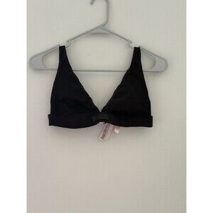 Victoria's Secret Bralette Bra Black V Neck Plunge Cotton Logo Small