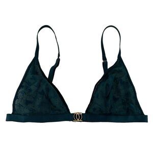 Victorias Secret Bralette Emerald Green Sheer Triangle Velvet Size L Hearts Sexy