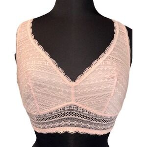 Victoria's Secret Bralette Sz Large Pink Floral Lace Pull On Stretch Sexy Layer