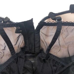 Cups also have a slide closure between cups with a black satin ribbon tie