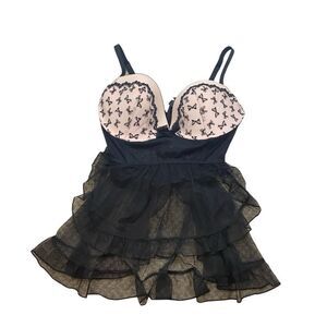 Victoria’s Secret Brand Apron Style Pink and Black Chemise Size 36D