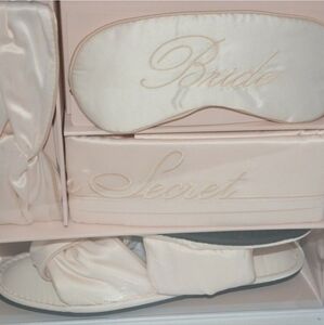 This Victoria’s Secret satin bridal set comes beautifully gift-boxed w/ darling sleep accessories—perfect for wedding prep, honeymoon nights, or as a thoughtful bridal shower gift.