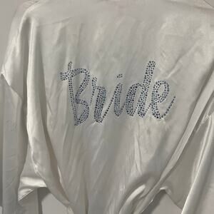 Victoria's Secret Bride Rhinestone White Silky Robe One Size. Excellent condition. Soft silky material. Short Sleeve. Adjustable tie/belt at waist. Great for wedding morning, honeymoon, or other wedding-related activities!