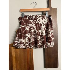 Victoria's Secret Brown Cream Floral Stretch Mini Cover Up Swim Skirt Size Small