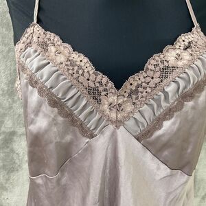 Victoria's Secret Cami Camisole Women's L Gray Lace Babydoll Sexy Y2K style shows wash wear including snags loose threads at lace.