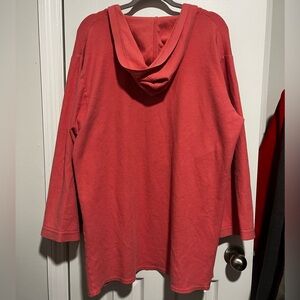 Cozy and chic Victoria’s Secret hooded cardigan in a rich coral-pink color. Features a soft waffle-knit texture, open front with adjustable tie closure, and a relaxed, drapey fit. Perfect as a lightweight layer for lounging, running errands, or a beach cover-up.