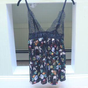 Victoria's Secret Chantilly Lace Black Floral Print Babydoll, size S NWOT