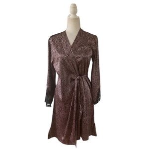 Silky and gorgeous with a dramatic Chantilly lace back that dips to a low V. Wrap styling and Lightweight