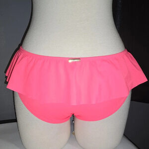 This is a pair of brand new with tags, never worn swim bottoms by Victoria’s Secret. These are a Cheeky style with all-around ruffle, in size small.