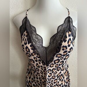 Victoria’s Secret Cheetah Print Black Lace Trim Criss Cross Slip Mid Dress XL