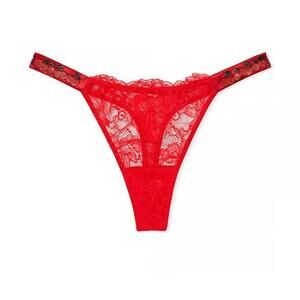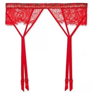 Victoria's Secret Cherry Shine Strap Lace Garter Belt and Thong