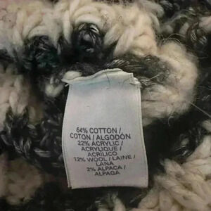 The Victoria's Secret turtleneck sweater is in excellent used condition it features a boxy, hip length fit with a chunky knit black and cream colored striped pattern.