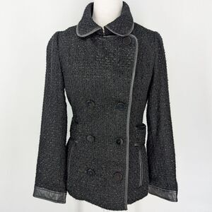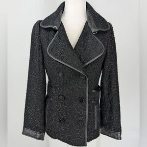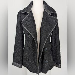 Victoria's Secret Classic Black Silver Tweed Double Breasted Pea Coat Medium