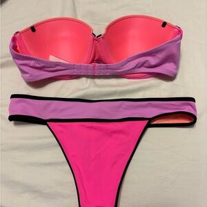 Dive into style with Victoria's Secret's stunning bikini, featuring a captivating mix of colors. The sleek fabric adds a touch of sophistication, making it an ideal choice for sun-soaked adventures.