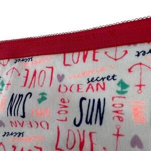 Victoria's Secret Colorful Script Print Cotton Hi Cut Leg Bikini Womens Size Lar