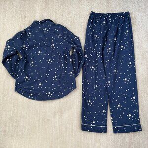 A blue and white star print long sleeve pajama set with long / tall cut.