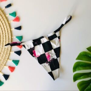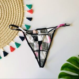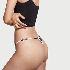 Victoria’s Secret Cotton V String Panty Smooth Black Floral Invasion XS NEW