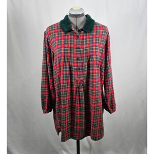 Victoria's Secret Country Babydoll Flannel Nightgown Velvet Collar Red & Green M
