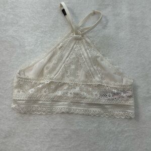 Discover the allure of Victoria's Secret with this cream bra, showcasing delicate lace detailing and adjustable straps. Crafted from a luxurious blend of stretch lace and soft fabrics, it offers a romantic and sophisticated addition to your intimate collection.
