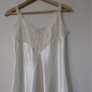Elegant cream slip dress. Delicate lace detailing. Perfect for intimate wear.