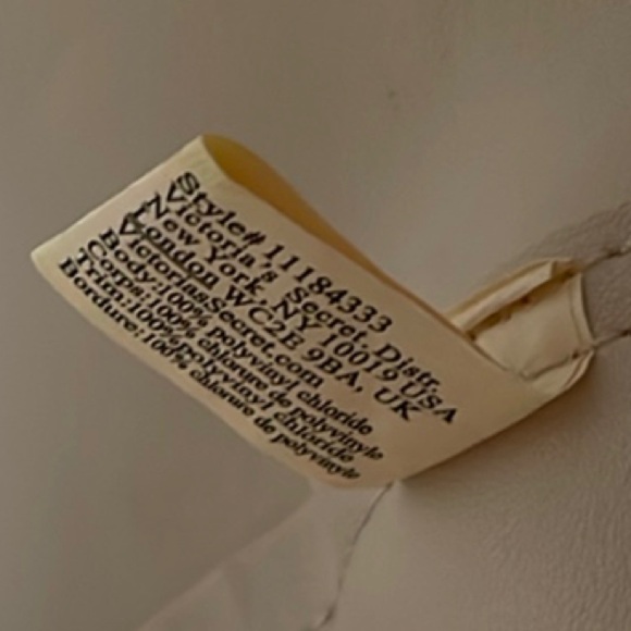 This cream tote from Victoria's Secret combines elegance with functionality, featuring a spacious interior and a sleek, structured design. The embossed logo on the front adds a touch of sophistication, making it a versatile accessory for any occasion.