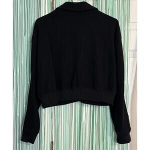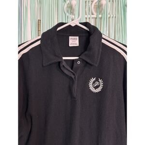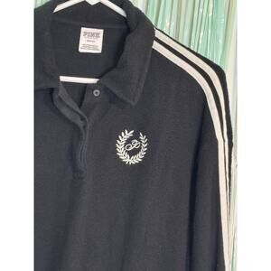 Victoria’s Secret Cropped Black Collared Pullover, White Stripes, Crest, Medium