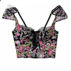 Size is 32b and fits like an XS/S. Top is amazing quality! Originally purchased for ~$100. Amazing detailing and has been one of my favorite going out tops