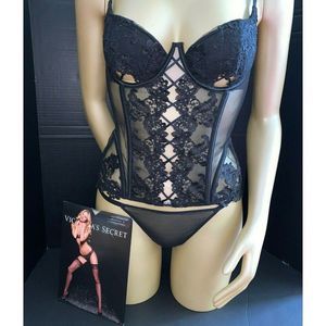 NWT STUNNING Victoria's Secret SET,includes:1)34B OR 36C Designer Collection corset bustier 2)Regular VS One size thong or a Medium Designer Collection thong, but it has a couple holes,please, see last 5 photos 3)VS stockings (seller's choice,depends on what's left in stock) GORGEOUS SET!!!EXTREMELY RARE!!!YOU'll LOVE IT!!!!!! Dear Buyers, also Pls, ask questions before buying please!I'll be happy to answer them ))) All sales r FINAL, so NO returns please. Check out my other VS items. * I' m aiming at getting a 100% positive rating, so please make sure you leave 5 stars after you receive your beautiful items))) I will do the same for you! I DO COMBINED SHIPPING, so you're more than WELCOME to check out my other items;)
