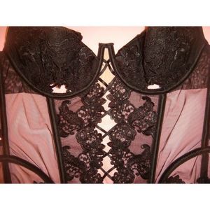 Victoria's Secret DESIGNER COLLECTION 34B,36C CORSET SET BLACK floral embroidery
