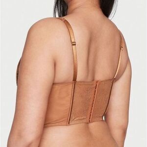 This romantic bustier in sheer mesh and delicate floral shimmer lace features corset-style detailing at the front, plus boning throughout for shape and structure — wear it in or out.