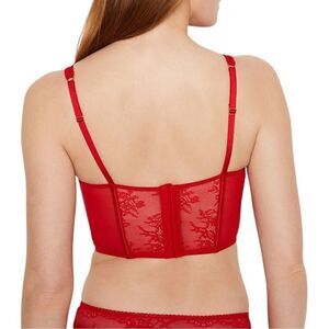 This romantic bustier in sheer mesh and delicate floral lace features corset-style detailing at the front, plus boning throughout for shape and structure — wear it in or out.