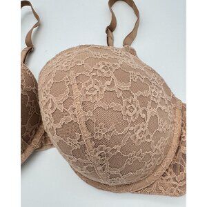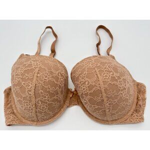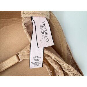 Victoria's Secret Demi Bra Taupe Beige Underwire Floral Lace Overlay Size 36DD