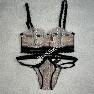 Victoria's Secret velvet with scalloped and lace balconet bra. Velvet & Scallop lace cheekini panty