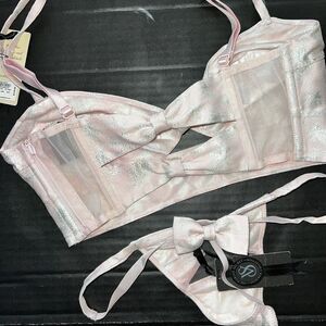 Victoria's Secret Designer Collection 32C BRA BRALETTE SET S Pink Silver Palm