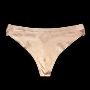 Victorias Secret Discontinued No-Show Sexy satin Thong Thick Panty tan Large