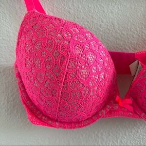 Victoria’s Secret Dream Angel Push-up Pink Lace Overlay. Adjustable straps, back clasp.
