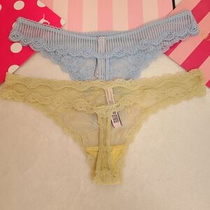 Victoria's Secret Dream Angels 2pk Sheer Lace Thong Panties Size M Blue Yellow