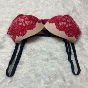 Victorias Secret Dream Angels 34DD Push Up Bra Pink Lace Adjustable Straps