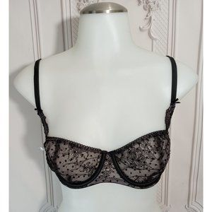 Victoria's Secret Dream Angels Black Dot Mesh Merry Widow Balconette Bra 32DD