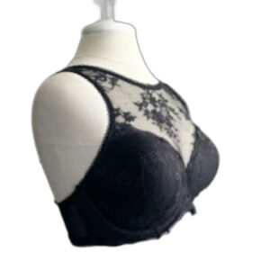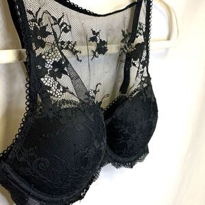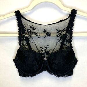 Victorias Secret Dream Angels Black Lace High Neck Underwire Lined Demi Bra 32B