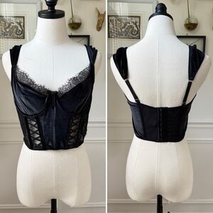 Victoria’s Secret Dream Angels Black Velvet Lace Corset Top $99 L