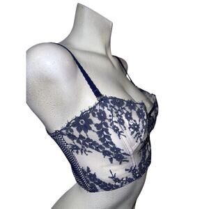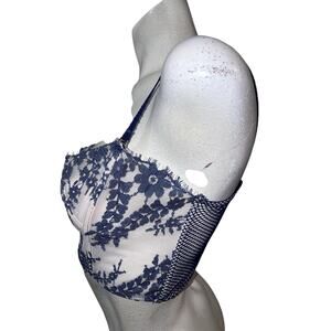 Victoria's Secret Dream Angels Bra Size M Pink Blue Lace & Mesh Rear Zip Bustier